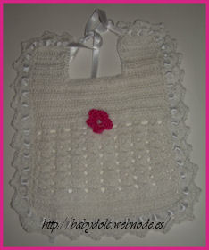 Conjunto elaborado a mano en crochet con hilo de perle y lana en color blanco y adornado con flores de hilo en fucsia, 7 piezas.